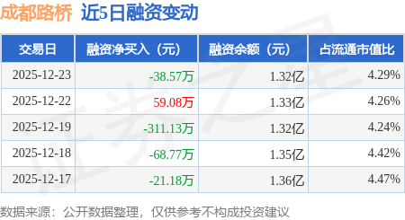 证券之星消息,12月23日,成都路桥(002628)融资买入158.0万元,融资偿还196.57万元,融资净卖出38.57万元,融资余额1.32亿元。