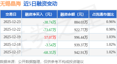 证券之星消息,12月23日,无锡晶海(920547)融资买入30.18万元,融资偿还68.92万元,融资净卖出38.74万元,融资余额884.03万元。