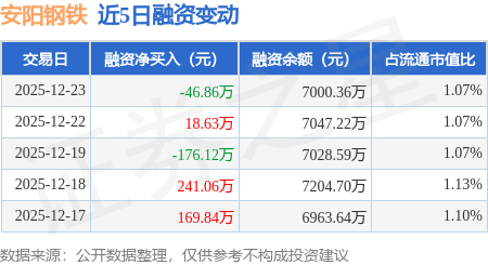 证券之星消息,12月23日,安阳钢铁(600569)融资买入310.33万元,融资偿还357.19万元,融资净卖出46.86万元,融资余额7000.36万元。