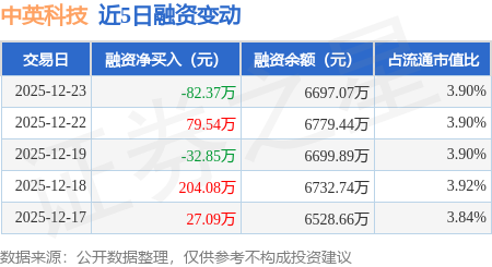 证券之星消息,12月23日,中英科技(300936)融资买入373.66万元,融资偿还456.02万元,融资净卖出82.37万元,融资余额6697.07万元。