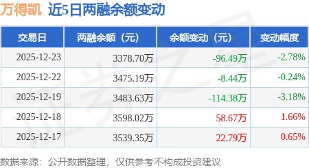 证券之星消息,12月23日,万得凯(301309)融资买入225.34万元,融资偿还321.83万元,融资净卖出96.49万元,融资余额3378.7万元。
