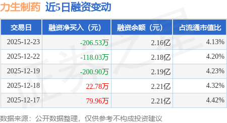 证券之星消息,12月23日,力生制药(002393)融资买入328.14万元,融资偿还534.67万元,融资净卖出206.53万元,融资余额2.16亿元。