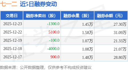 证券之星消息,12月23日,七一二(603712)融资买入3468.1万元,融资偿还3706.53万元,融资净卖出238.43万元,融资余额4.44亿元,近20个交易日中有11个交易日出现融资净买入。