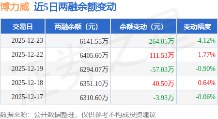 证券之星消息,12月23日,博力威(688345)融资买入170.43万元,融资偿还434.48万元,融资净卖出264.05万元,融资余额6141.55万元。
