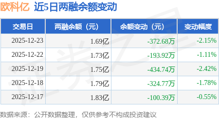 证券之星消息,12月23日,欧科亿(688308)融资买入2142.12万元,融资偿还2516.05万元,融资净卖出373.93万元,融资余额1.69亿元。