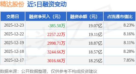 证券之星消息,12月23日,精达股份(600577)融资买入8682.43万元,融资偿还9067.93万元,融资净卖出385.5万元,融资余额19.07亿元,近20个交易日中有13个交易日出现融资净买入。