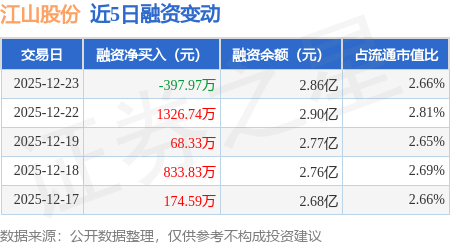 证券之星消息,12月23日,江山股份(600389)融资买入1696.33万元,融资偿还2094.3万元,融资净卖出397.97万元,融资余额2.86亿元。
