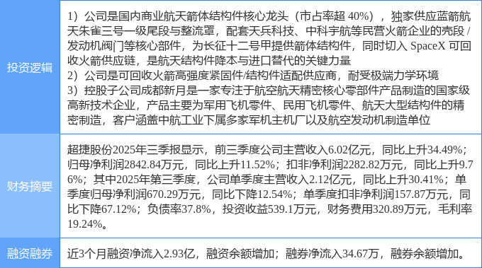 该股为SpaceX概念股,航天,通用航空概念热股,当日SpaceX概念股概念上涨10.64%,航天概念上涨4.43%,通用航空概念上涨3.93%。