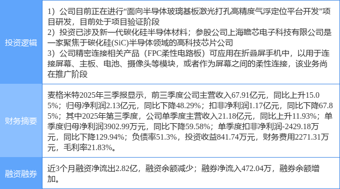 该股为折叠屏,玻璃基板封装,碳化硅概念热股,当日折叠屏概念上涨3.02%,玻璃基板封装概念上涨2.82%,碳化硅概念上涨2.73%。