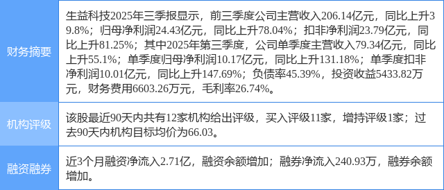 2025年11月3日,招银国际研究员杨天薇,张元圣,蒋嘉豪发布了对生益科技的研报《三季度业绩表明AI周期全面启动,目标价上调至90元人民币》,该研报对生益科技给出“买入”评级,认为其目标价为90.0元,现价距离目标价尚有23.97%的涨幅空间。研报中预计公司2025/26年收入将同比增长41%/38%,净利润同比增长102%/79%。重申"买入"评级,目标价上调至90元人民币(基于2026年估值),上调盈利预测以反映公司在AI驱动下的强劲增长势头(本次为更强劲的上升周期)和利润率的持续改善。证券之星数据中心根据近三年发布的研报数据计算,该研报作者对此股的盈利预测准确度为50.89%。