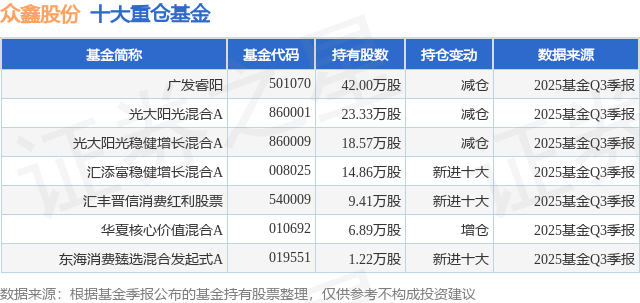 根据2025基金Q3季报公募基金重仓股数据,重仓该股的公募基金共7家,其中持有数量最多的公募基金为广发基金的广发睿阳。广发睿阳目前规模为4.12亿元,最新净值1.2494(12月23日),较上一交易日上涨0.99%,近一年上涨30.3%。该公募基金现任基金经理为傅友兴 王瑞冬。傅友兴在任的基金产品包括:广发稳健增长混合A,管理时间为2014年12月8日至今,期间收益率为167.3%;王瑞冬在任的基金产品包括:广发均衡价值混合A,管理时间为2020年5月20日至今,期间收益率为67.5%;广发稳健回报混合A,管理时间为2021年6月4日至今,期间收益率为-10.0%;广发核心竞争力混合A,管理时间为2023年5月5日至今,期间收益率为29.33%;广发医药精选股票A,管理时间为2023年7月6日至今,期间收益率为13.61%。