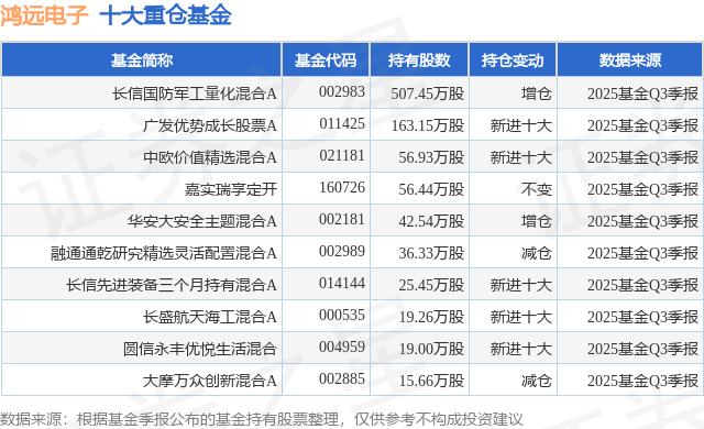 重仓鸿远电子的前十大公募基金请见下表: