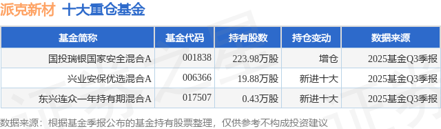 重仓派克新材的公募基金请见下表: