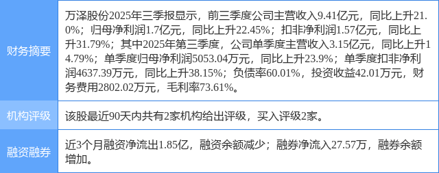 2025年10月27日,民生证券研究员尹会伟,孔厚融发布了对万泽股份的研报《2025年三季报点评:3Q25净利润增长24%;五期激励助力长期发展》,该研报对万泽股份给出“买入”评级。证券之星数据中心根据近三年发布的研报数据计算,该研报作者对此股的盈利预测准确度为65.39%。