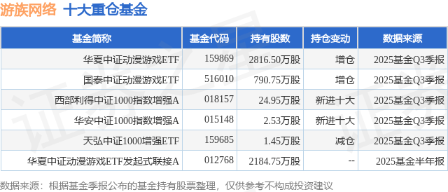 根据2025基金Q3季报公募基金重仓股数据,重仓该股的公募基金共5家,其中持有数量最多的公募基金为华夏基金的华夏中证动漫游戏ETF。华夏中证动漫游戏ETF目前规模为106.97亿元,最新净值1.446(12月23日),较上一交易日上涨1.18%,近一年上涨38.44%。该公募基金现任基金经理为鲁亚运。鲁亚运在任的基金产品包括:华夏创业板成长ETF联接A,管理时间为2022年6月10日至今,期间收益率为5.15%;华夏中证全指证券公司ETF联接A,管理时间为2022年6月10日至今,期间收益率为30.29%;华夏国证疫苗与生物科技指数发起A,管理时间为2022年9月6日至今,期间收益率为-33.36%;华夏战略新兴成指ETF联接A,管理时间为2023年3月27日至今,期间收益率为32.01%。