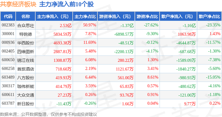 从资金流向上来看,当日共享经济板块主力资金净流出6.89亿元,游资资金净流入1.19亿元,散户资金净流入5.7亿元。共享经济板块个股资金流向见下表: