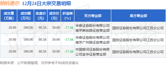 证券之星消息,12月24日纳科诺尔发生大宗交易,交易数据如下: