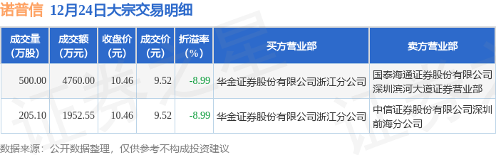 证券之星消息,12月24日诺 普 信发生大宗交易,交易数据如下: