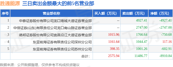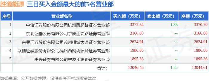 证券之星消息,沪深交易所2025年12月24日公布的交易公开信息显示,胜通能源(001331)因连续三个交易日内,涨幅偏离值累计达到20%的证券登上龙虎榜。此次是近5个交易日内第3次上榜。