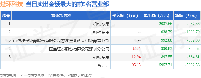 从龙虎榜公布的当日买卖数据来看,机构合计净卖出3961.07万元。