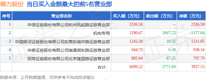 从龙虎榜公布的当日买卖数据来看,机构合计净卖出4718.73万元。炒股养家等知名游资榜上有名。(知名游资炒股养家一般指华鑫证券有限责任公司上海宛平南路证券营业部席位,根据市场资料整理,仅供参考)