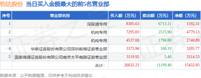 从龙虎榜公布的当日买卖数据来看,机构合计净买入28.14万元,北向资金合计净买入1592.51万元。作手新一等知名游资榜上有名。(知名游资作手新一一般指国泰海通证券股份有限公司南京太平南路证券营业部席位,根据市场资料整理,仅供参考)