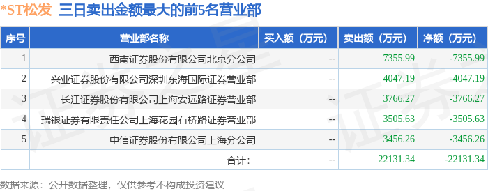 证券之星消息,沪深交易所2025年12月24日公布的交易公开信息显示,*ST松发(603268)因ST、*ST证券连续三个交易日内收盘价格涨幅偏离值累计达到12%的证券登上龙虎榜。此次是近5个交易日内第1次上榜。