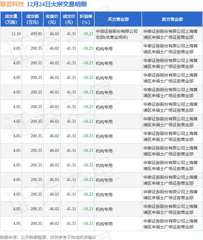 证券之星消息,12月24日联芸科技发生大宗交易,交易数据如下: