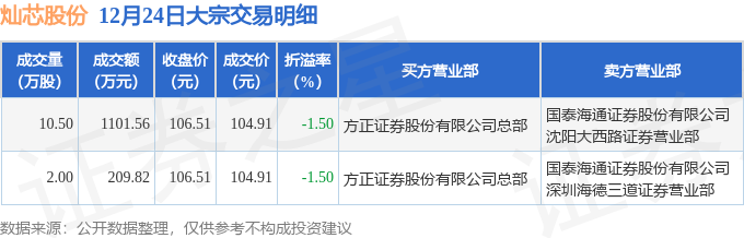 证券之星消息,12月24日灿芯股份发生大宗交易,交易数据如下:
