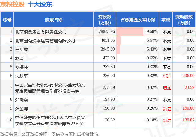 根据京粮控股2025年三季报公布的十大股东详情如下: