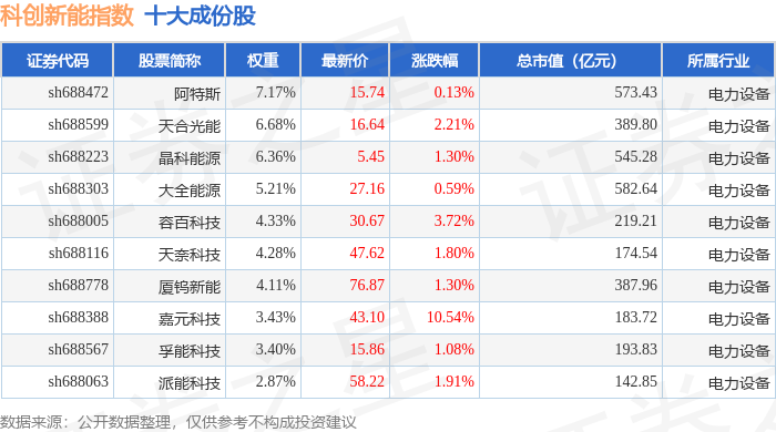 证券之星消息,12月24日,科创新能(000692)指数报收于1169.09点,涨2.79%,成交180.59亿元,换手率2.16%。当日该指数成份股中,上涨的有39家,奥特维以14.79%的涨幅领涨,下跌的有3家,芳源股份以3.45%的跌幅领跌。