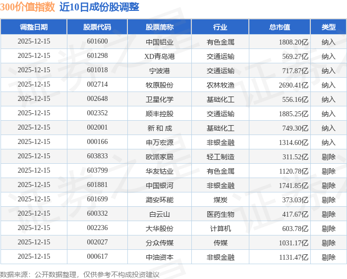 近10日内300价值(000919)指数成份股做了调整,新纳入了8只股票,剔除了8只股票。