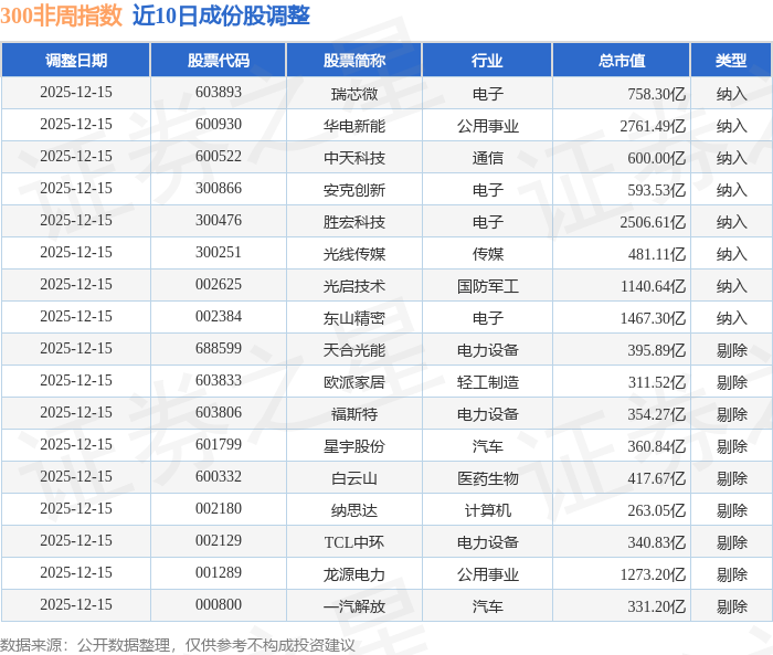 近10日内300非周(000969)指数成份股做了调整,新纳入了8只股票,剔除了9只股票。