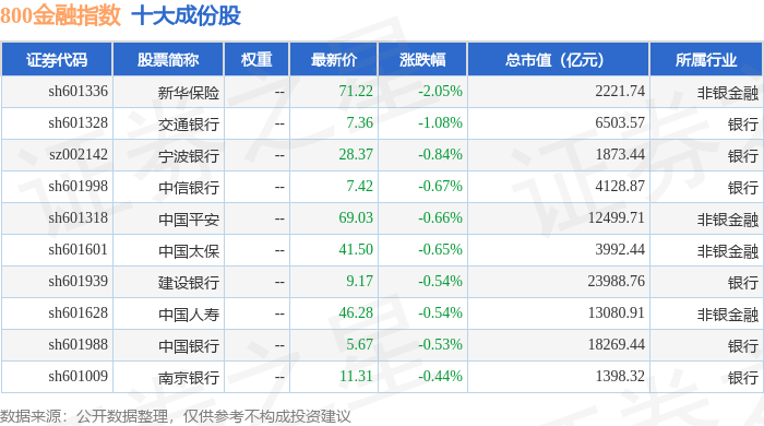 800金融(000974)指数十大成份股详情如下: