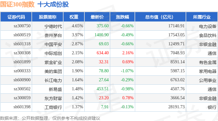 证券之星消息,12月24日,国证300(399312)指数报收于5446.38点,涨0.41%,成交4362.07亿元,换手率0.52%。当日该指数成份股中,上涨的有184家,环旭电子以10.01%的涨幅领涨,下跌的有103家,恺英网络以4.09%的跌幅领跌。
