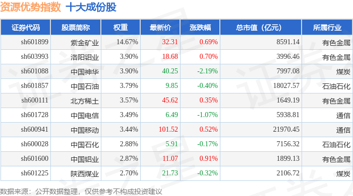 资源优势(399319)指数十大成份股详情如下: