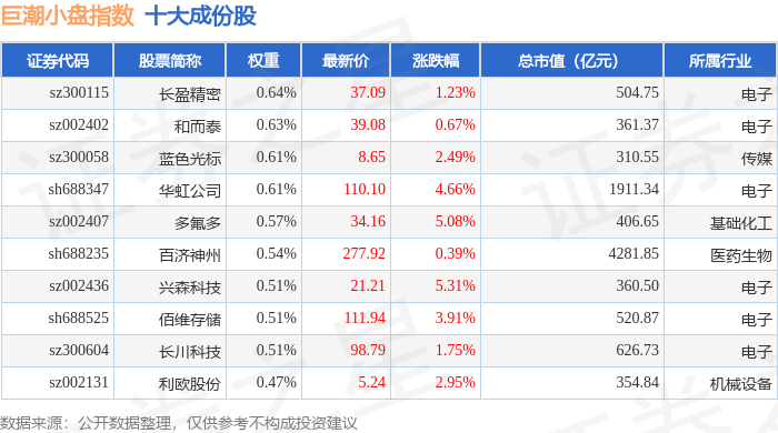 巨潮小盘(399316)指数十大成份股详情如下: