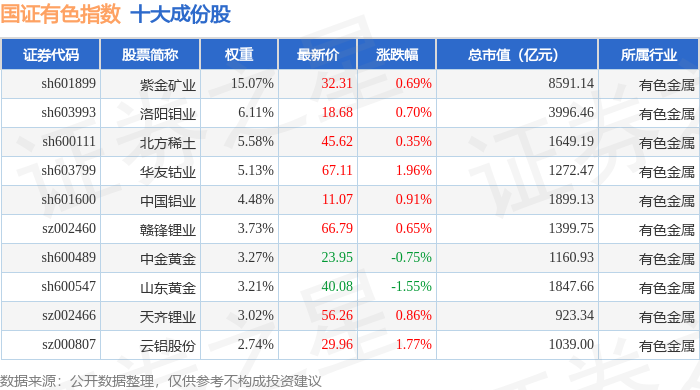 证券之星消息,12月24日,国证有色(399395)指数报收于9367.27点,涨0.4%,成交722.55亿元,换手率1.88%。当日该指数成份股中,上涨的有33家,中矿资源以5.69%的涨幅领涨,下跌的有17家,中钨高新以5.31%的跌幅领跌。