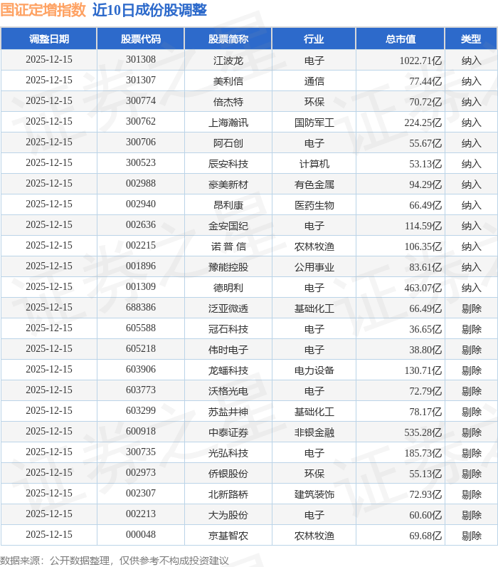 近10日内国证定增(399428)指数成份股做了调整,新纳入了12只股票,剔除了12只股票。