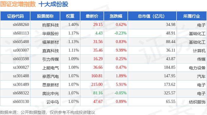 国证定增(399428)指数十大成份股详情如下: