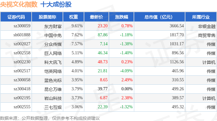 近10日内央视文化(399557)指数成份股做了调整,新纳入了1只股票,剔除了1只股票。