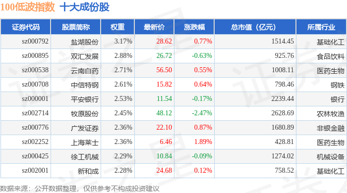 近10日内100低波(399645)指数成份股做了调整,新纳入了6只股票,剔除了6只股票。