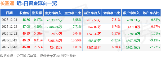 证券之星消息,截至2025年12月24日收盘,长盈通(688143)报收于46.86元,下跌0.47%,换手率5.83%,成交量7.13万手,成交额3.35亿元。