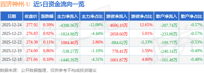 证券之星消息,截至2025年12月24日收盘,百济神州(688235)报收于277.92元,上涨0.39%,换手率1.14%,成交量1.31万手,成交额3.64亿元。