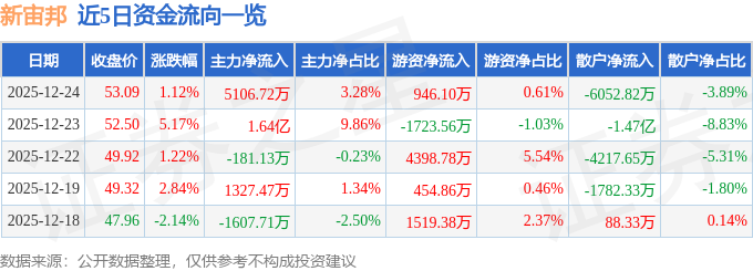 12月24日的资金流向数据方面,主力资金净流入5106.72万元,占总成交额3.28%,游资资金净流入946.1万元,占总成交额0.61%,散户资金净流出6052.82万元,占总成交额3.89%。