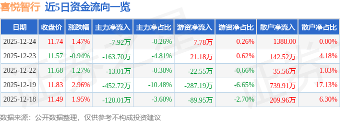 证券之星消息,截至2025年12月24日收盘,喜悦智行(301198)报收于11.74元,上涨1.47%,换手率1.67%,成交量2.6万手,成交额3045.03万元。