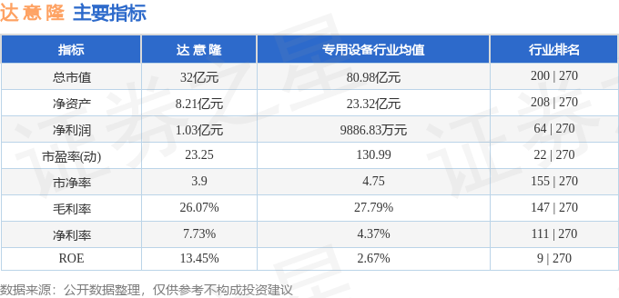 该股主要指标及行业内排名如下:
