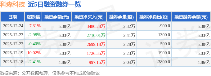 证券之星消息,截至2025年12月24日收盘,科森科技(603626)报收于15.71元,上涨7.31%,换手率14.27%,成交量79.17万手,成交额12.28亿元。