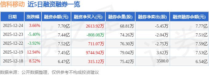 信科移动融资融券信息显示,融资方面,当日融资买入2.0亿元,融资偿还1.74亿元,融资净买入2613.92万元。融券方面,融券卖出1.25万股,融券偿还6.7万股,融券余量68.81万股,融券余额661.91万元。融资融券余额7.77亿元。