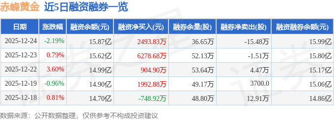 赤峰黄金融资融券信息显示,融资方面,当日融资买入2.0亿元,融资偿还1.76亿元,融资净买入2493.83万元,连续3日净买入累计9677.41万元。融券方面,融券卖出1.36万股,融券偿还16.84万股,融券余量36.65万股,融券余额1195.89万元。融资融券余额15.99亿元。